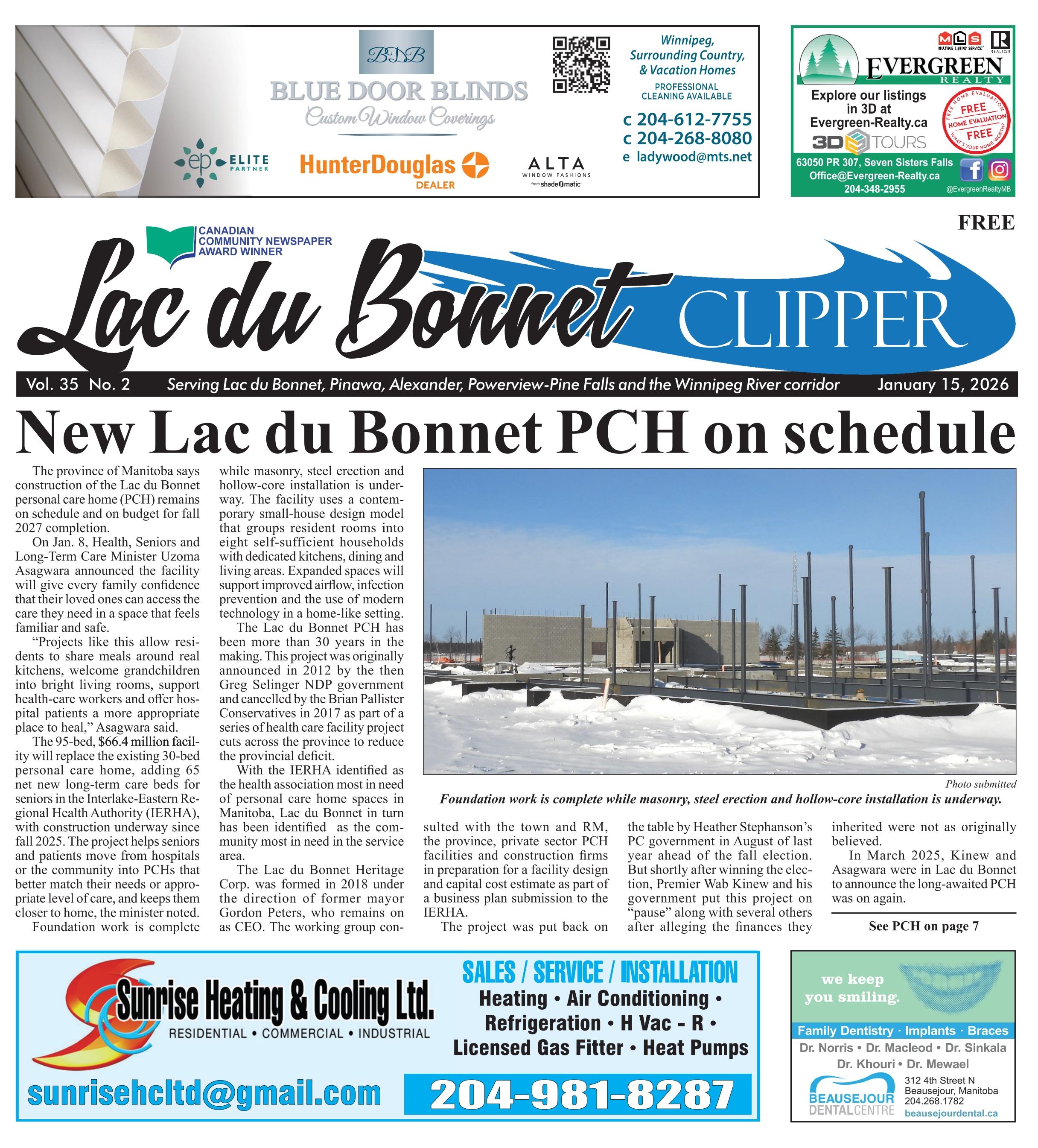 New Lac du Bonnet PCH on schedule